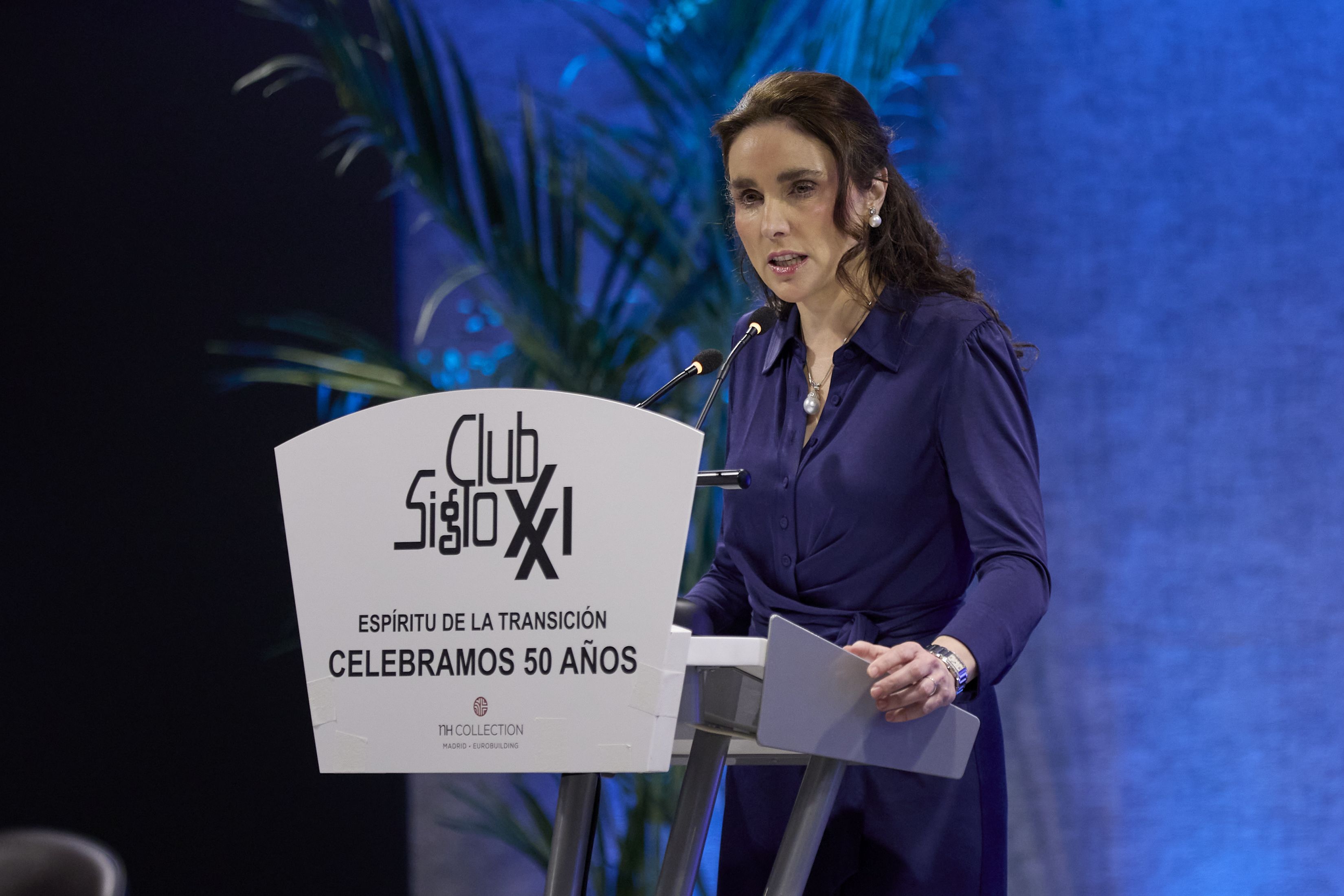 Me permitiréis que, muy en particular, dé la enhorabuena a la presidenta de honor, Paloma de Arenaza, el alma del “Siglo XXI”, que ha hecho crecer, con un trabajo impecable, esa intuición inicial de un club que, sin perder el carácter asociativo, fuera útil al conjunto de la sociedad española.